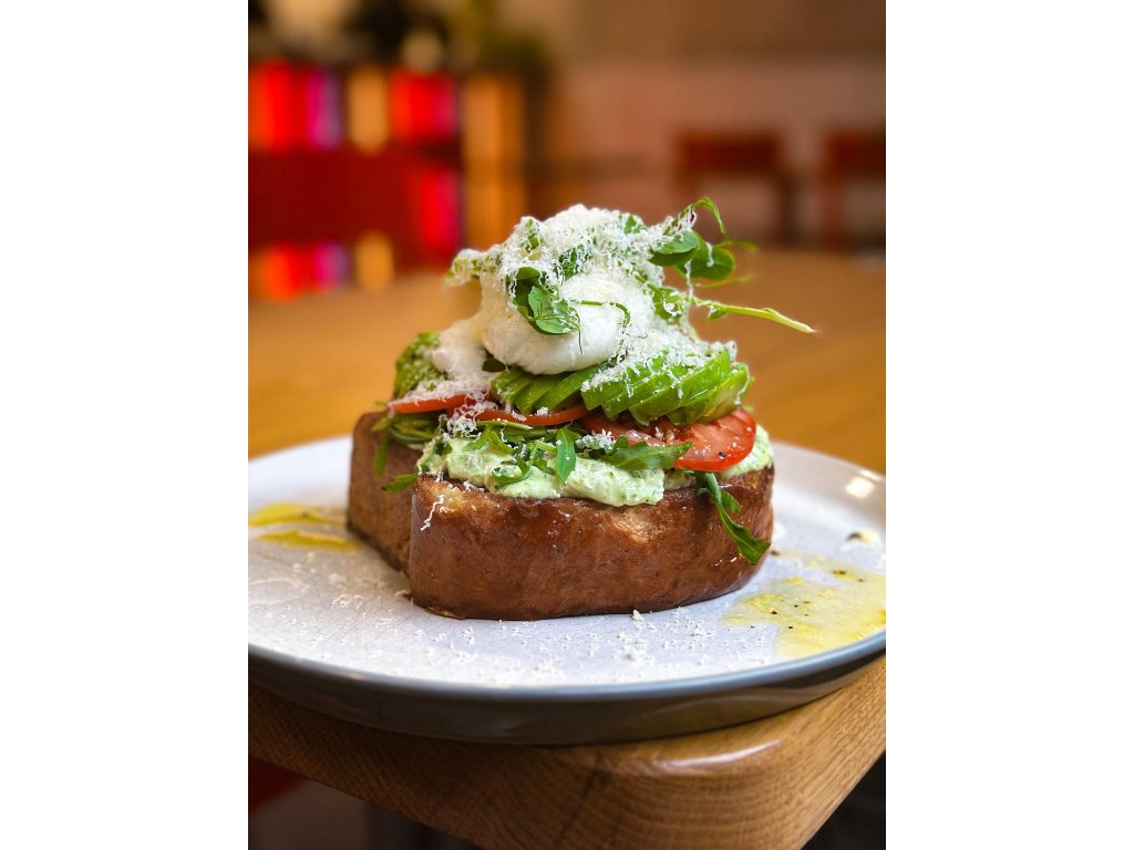 Avokádo / krémový bylinkový sýr / pošírované vejce / rajče / rukola / parmezán 1,3,7,10,12
