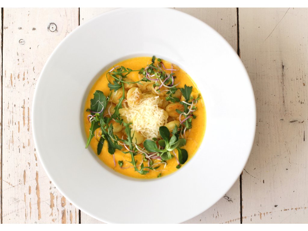 (sýr gran Moravia, karamelizovaná dýně, ořechy, bylinky)