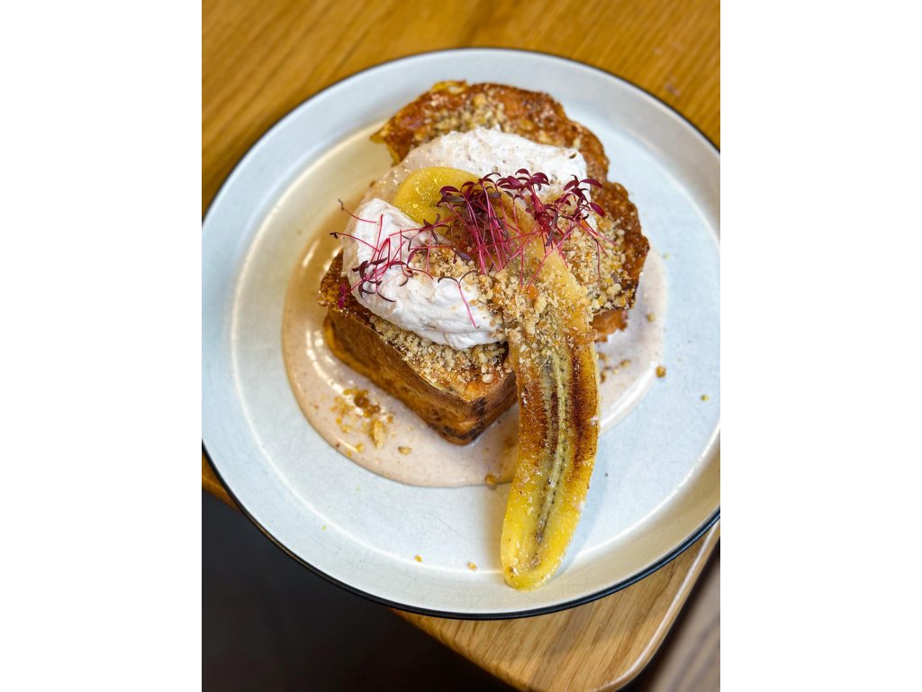 Máslová brioška / kaštanový krém / vanilková omáčka se skořicí / pečený banán / griliáš 1,3,7,8,12