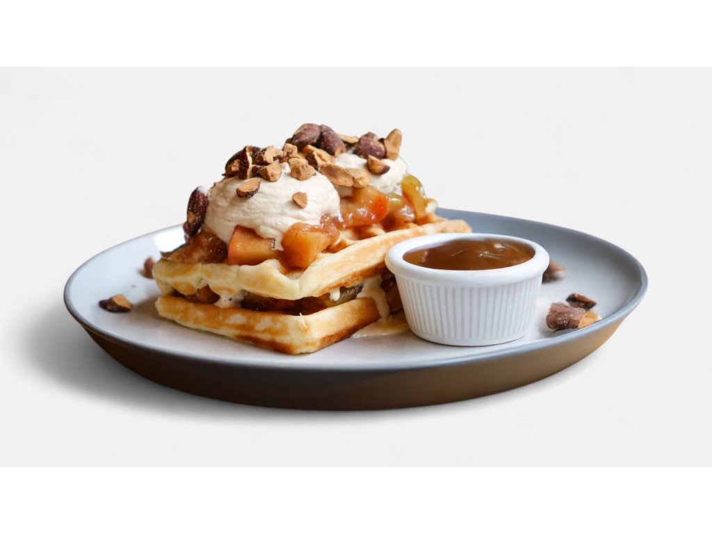 pečené ovoce v karamelu / pumpkin spice krem/ strouhaný perník/ physalis